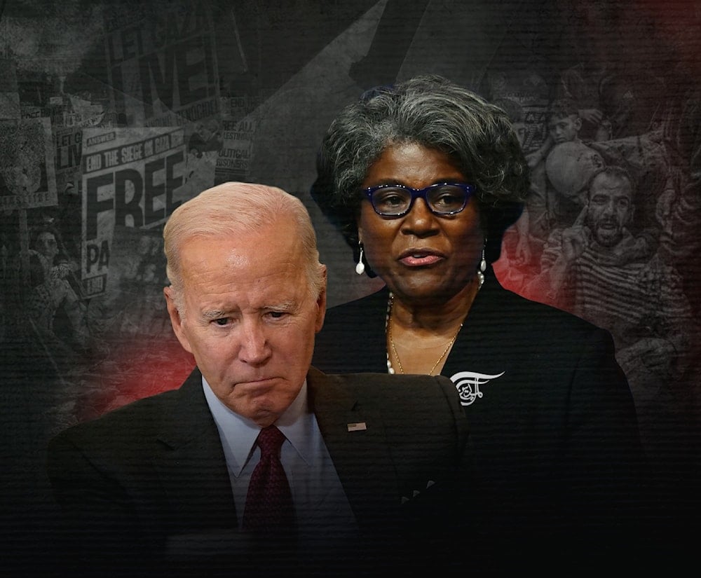 The Biden campaign team has felt the ripple effects of the Gaza genocide back home (illustrated by Zeinab al-Hajj; Al Mayadeen English)
