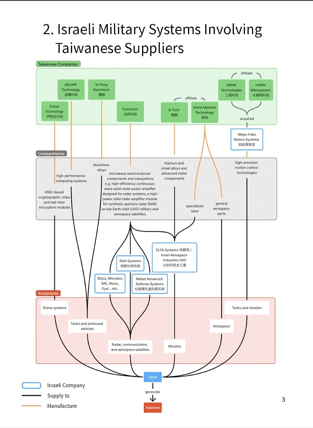 Today at least eight Taiwanese companies are involved in supplying components for drones and armaments to “Israeli” arms firms, including Elbit, Rafael, and IAI.