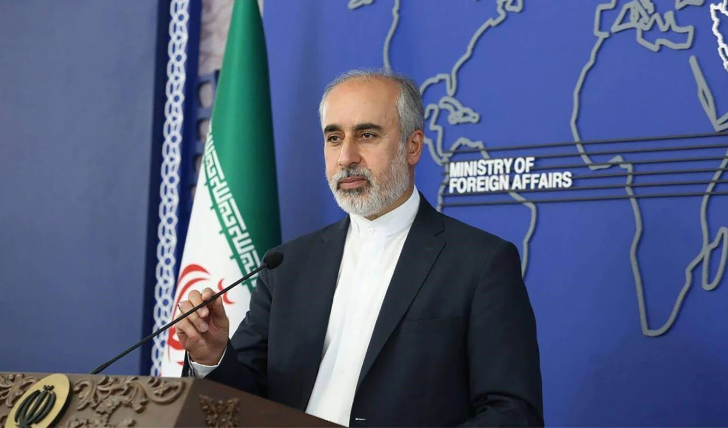 Iranian Foreign Ministry spokesperson Nasser Kanaani speaks during a press conference in the capital Tehran on December 5, 2022. (AFP)