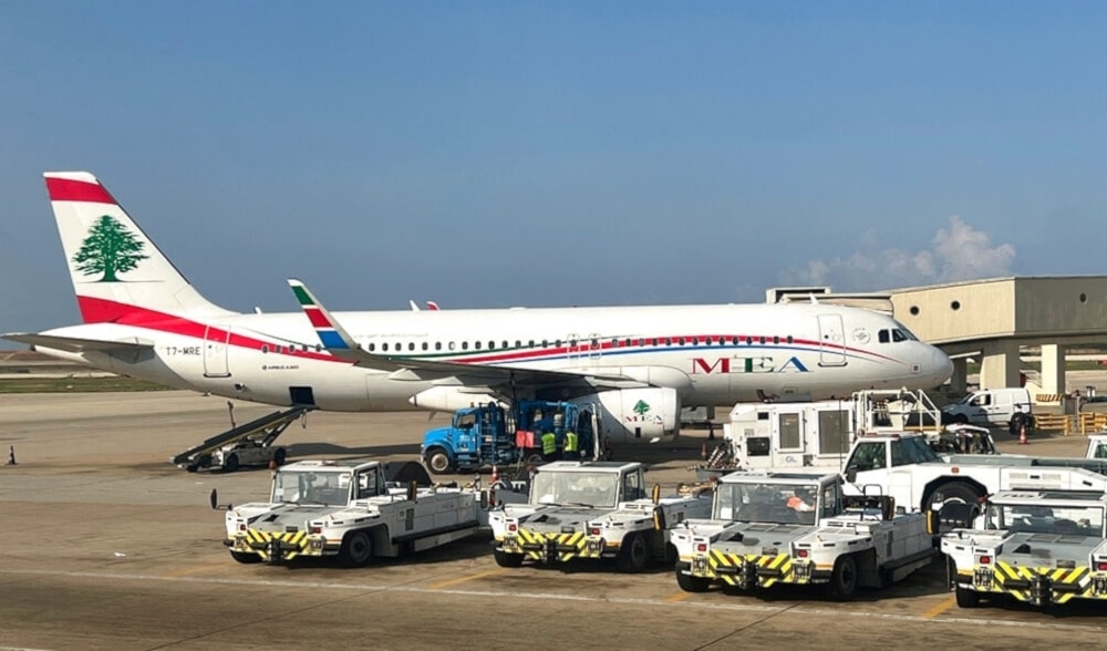 A Middle East Airlines jet grounded at the Rafik Hariri International Airport in Beirut, Lebanon, on Tuesday, November 1, 2022. (AP)