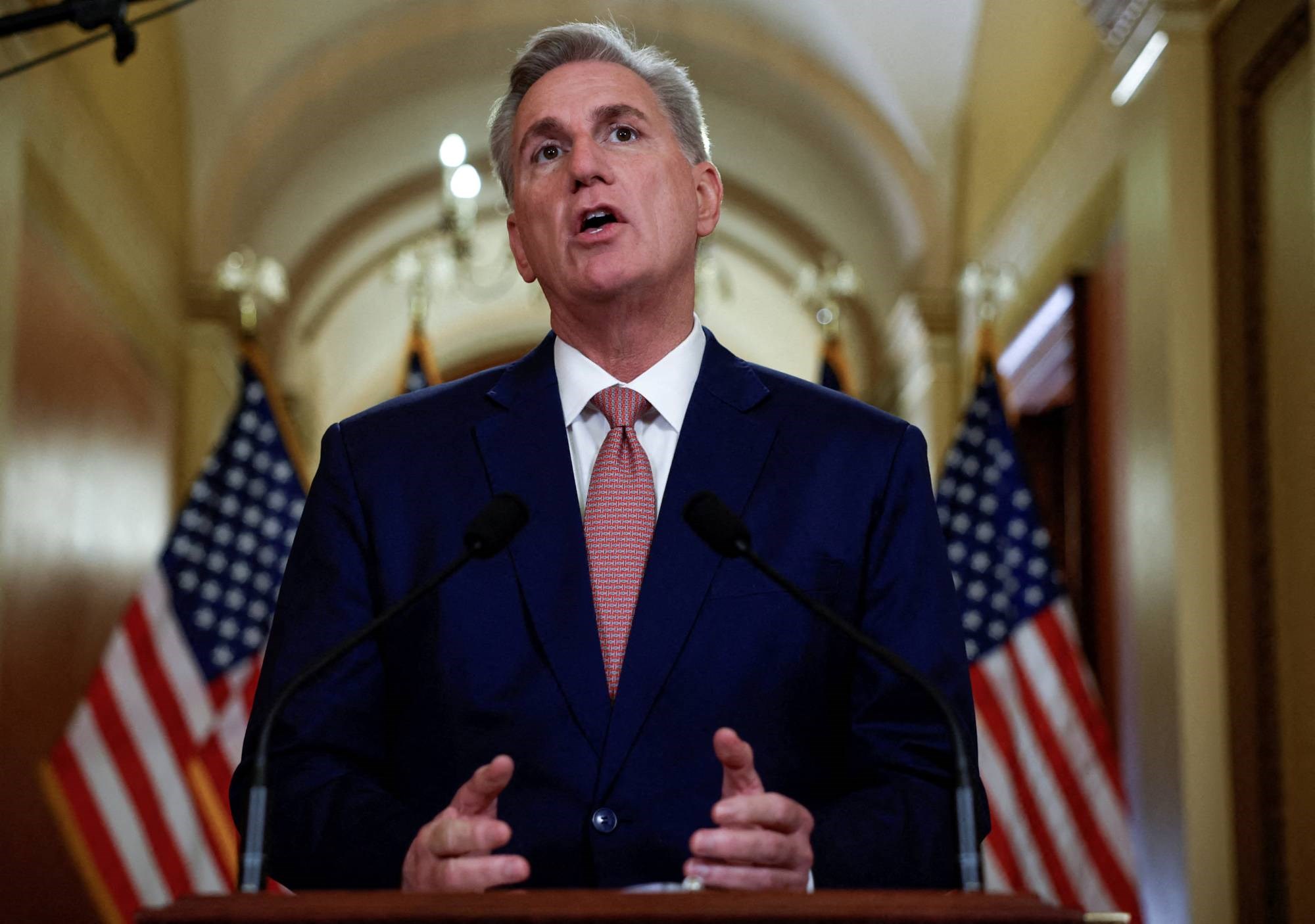 US House Speaker Kevin McCarthy speaking on Capitol Hill in February, 2023. (Reuters)