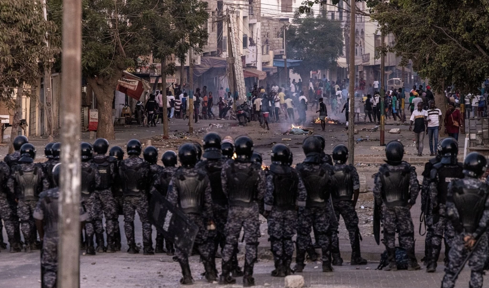 In Dakar, police in riot gear deployed tear gas, stun grenades, and seemingly rubber bullets against large crowds burning tires and throwing stones, Reuters reported.