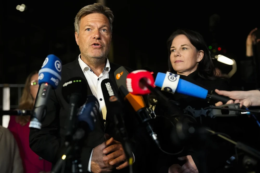 German Minister for Economic Affairs and Climate Action Robert Habeck briefs the media after the meeting of German government leaders in Berlin, on November 6, 2024. (AP)