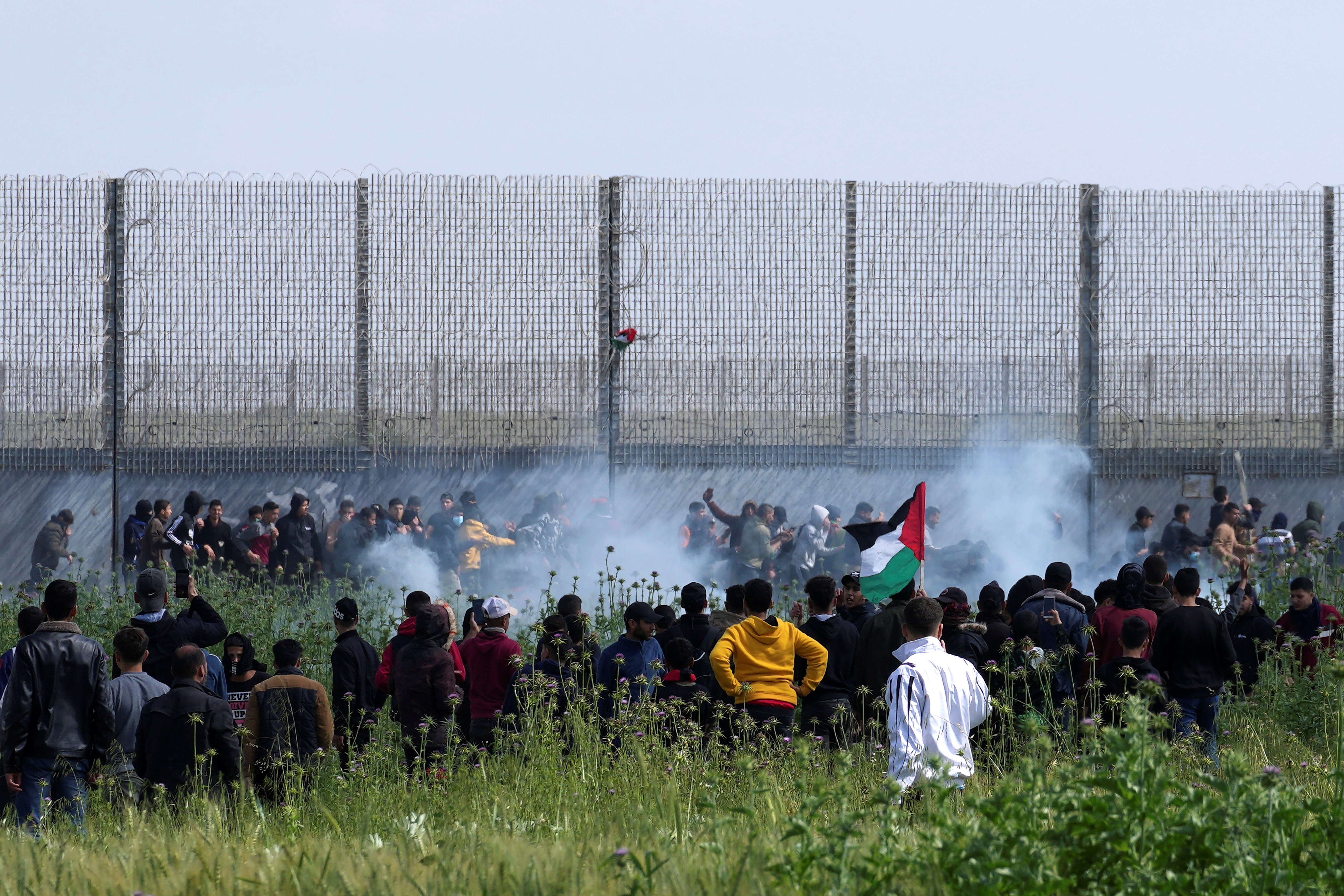 Israeli forces fire tear gas at #Palestinians commemorating Land Day, east of Gaza city.#FreePalestine #Gaza #غزة pic.twitter.com/2idaHNiapu