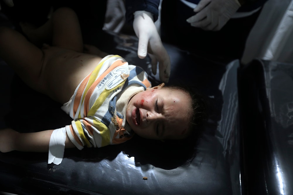Palestinian medics treat a wounded child in the Israeli bombardment of the Gaza Strip at the Kuwaiti Hospital in Rafah refugee camp on April 19, 2024. (AP)
