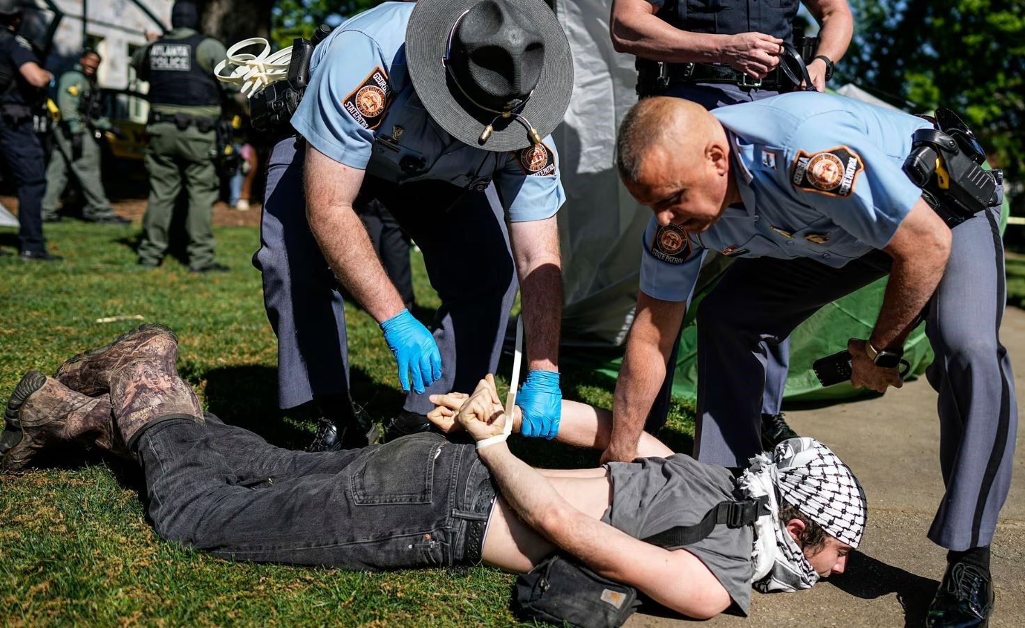 Nothing to see here. Just the Georgia police giving Emory University students lessons in tolerance, diversity and freedom of expression!#Zionists #Fascism #GazaHolocaust pic.twitter.com/PlV6gFcJIe
