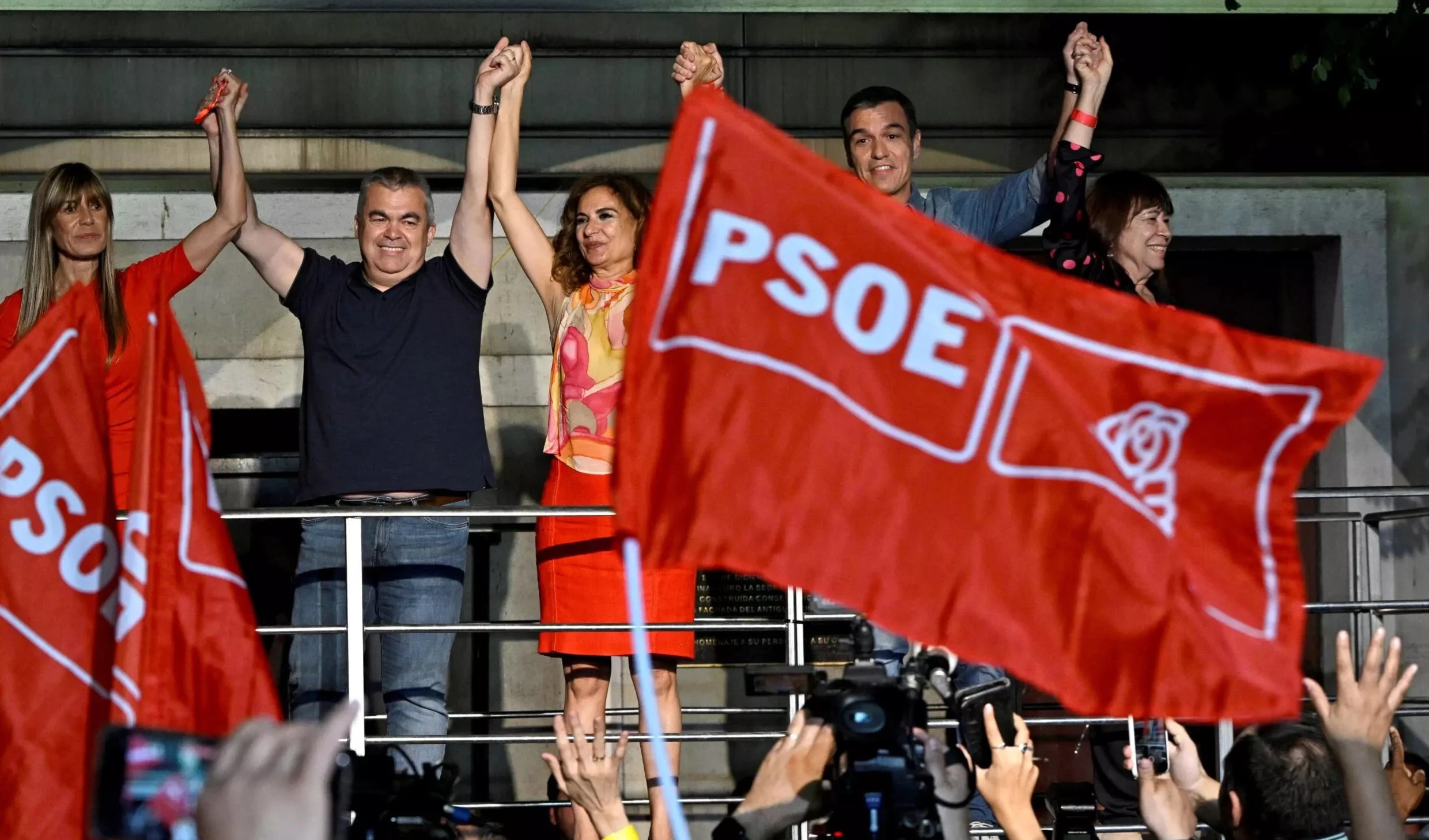 "The regressive block made up of the Popular Party and Vox were beaten," he added from the balcony of his party's headquarters in Madrid.