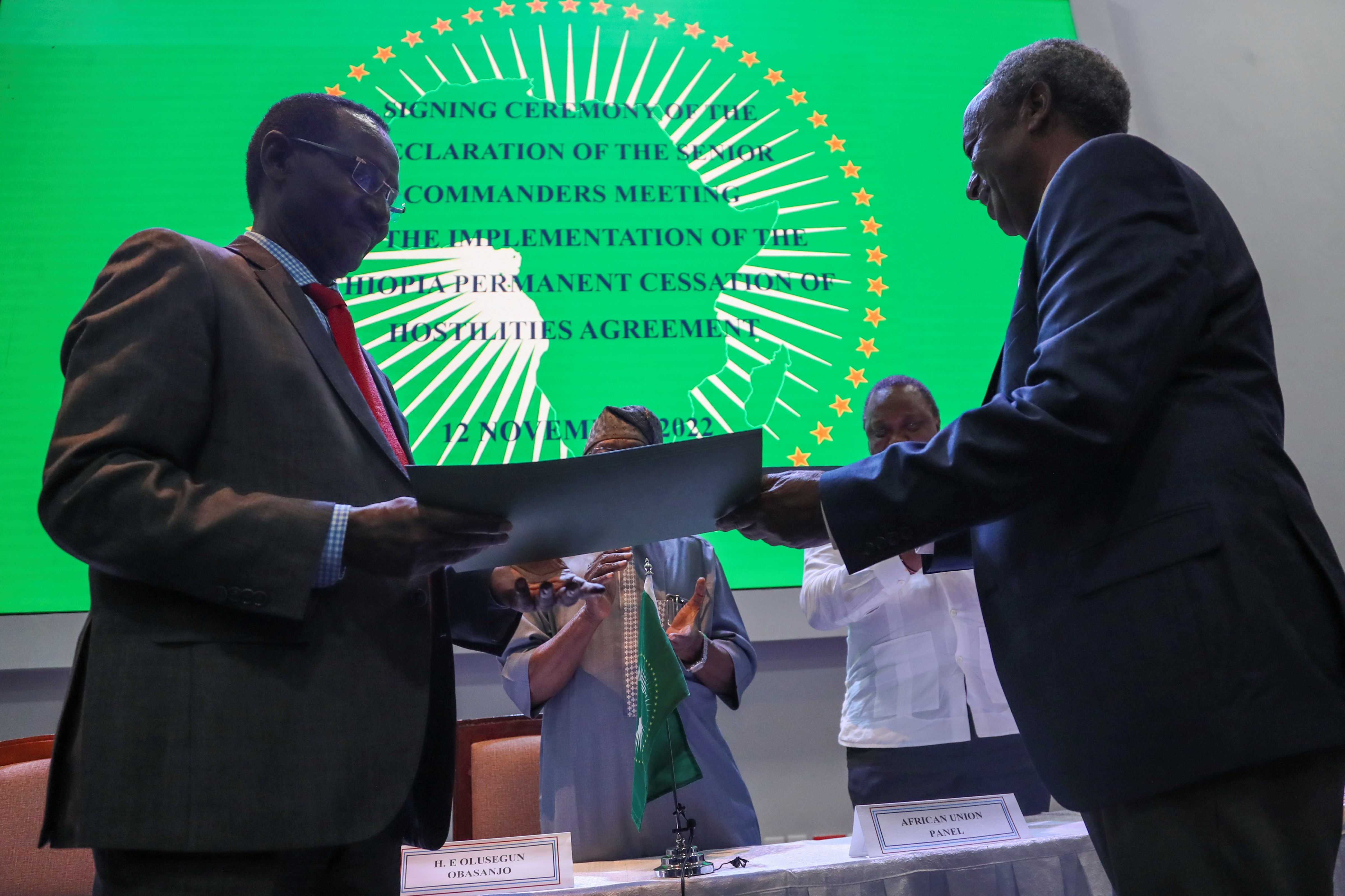 "The parties have agreed to facilitate unhindered humanitarian access to all in need of assistance in Tigray and neighboring regions, facilitate the unhindered movement of humanitarian aid workers, provide security guarantees for humanitarian aid workers and organizations as well as protection of civilians," a statement released by the African Union said.