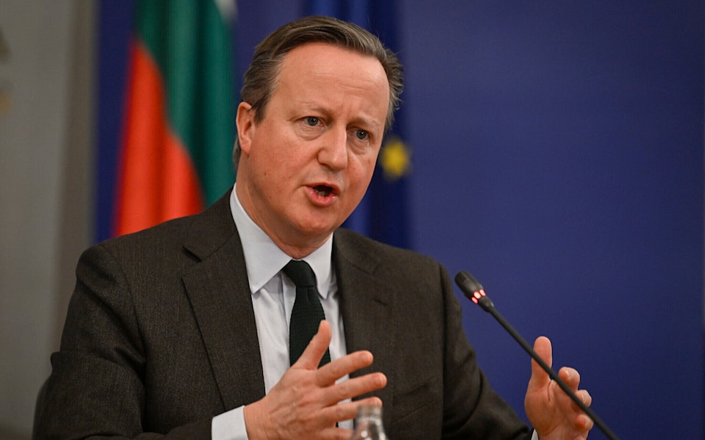 Britain's Foreign Secretary David Cameron speaks during a joint news conference after his meeting with the Bulgarian Prime Minister in Sofia, February 14, 2024. (AFP)