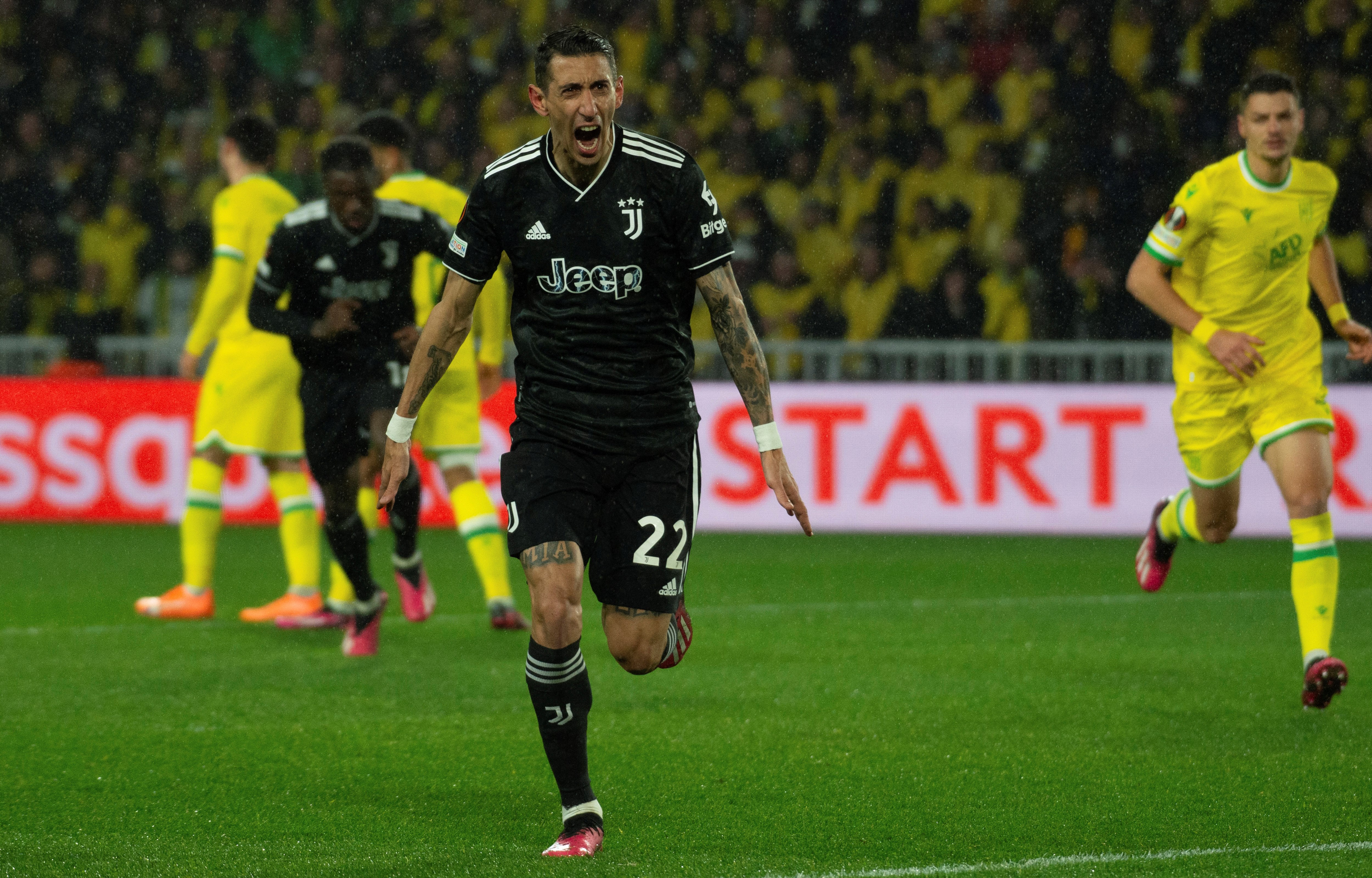Angel Di Maria scores three goals for Juventus with zero for Nantes, leading the Italian team into the Europa League last 16.