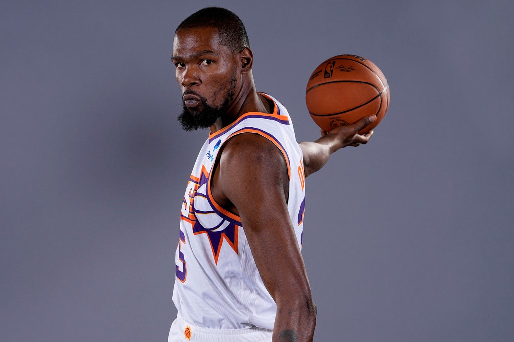 Phoenix Suns' Kevin Durant poses for a portrait during the NBA basketball team's media day, in Phoenix, United States, October 2, 2023. (AP)